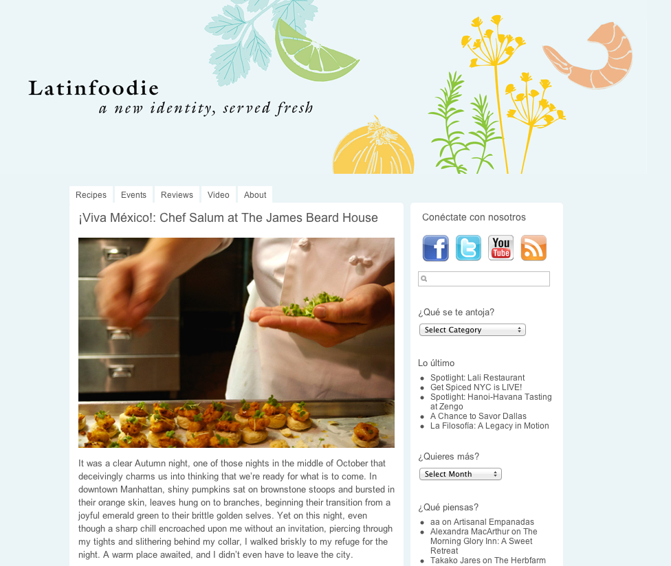 Founded in 2008 Latinfoodie.com is a bicultural blog that offers Hispanic Americans and those who love the culture a place to reconnect with their food history. Here you’ll find stories about the latest trends in the NYC’s Latin food scene, reviews on Latin American restaurants, and profiles of innovative chefs, cooks, and bloggers who are recreating the Latin kitchen.